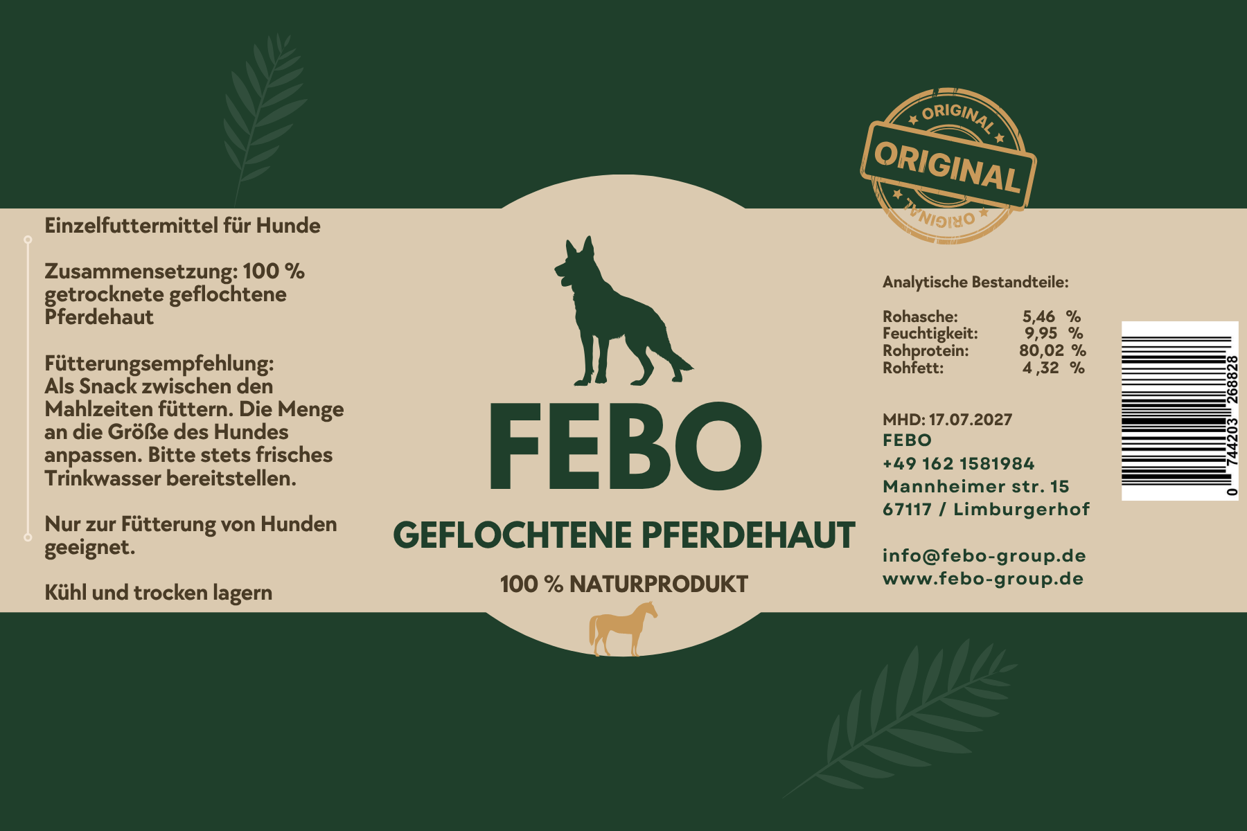100% doğal kurutulmuş at derisi, köpeğiniz için hem lezzetli hem de son derece dayanıklı bir çiğneme ödülüdür. FEBO'nun özenle hazırladığı bu ürün, sevimli dostunuzun saatlerce meşgul olmasını sağlarken sağlığına da katkıda bulunur.